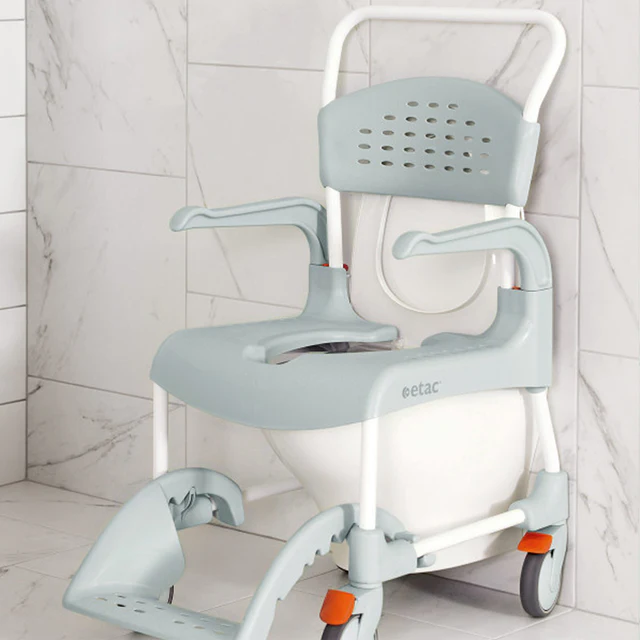 Silla de ducha y wc Clean con ruedas Etac para facilitar la higiene diaria a personas mayores
